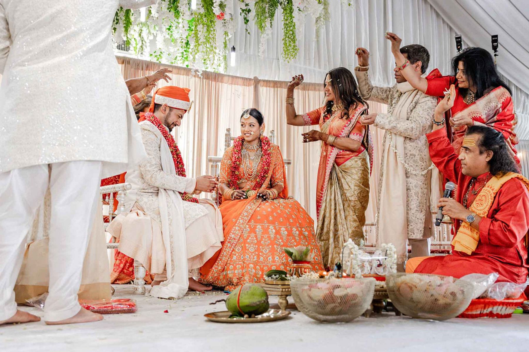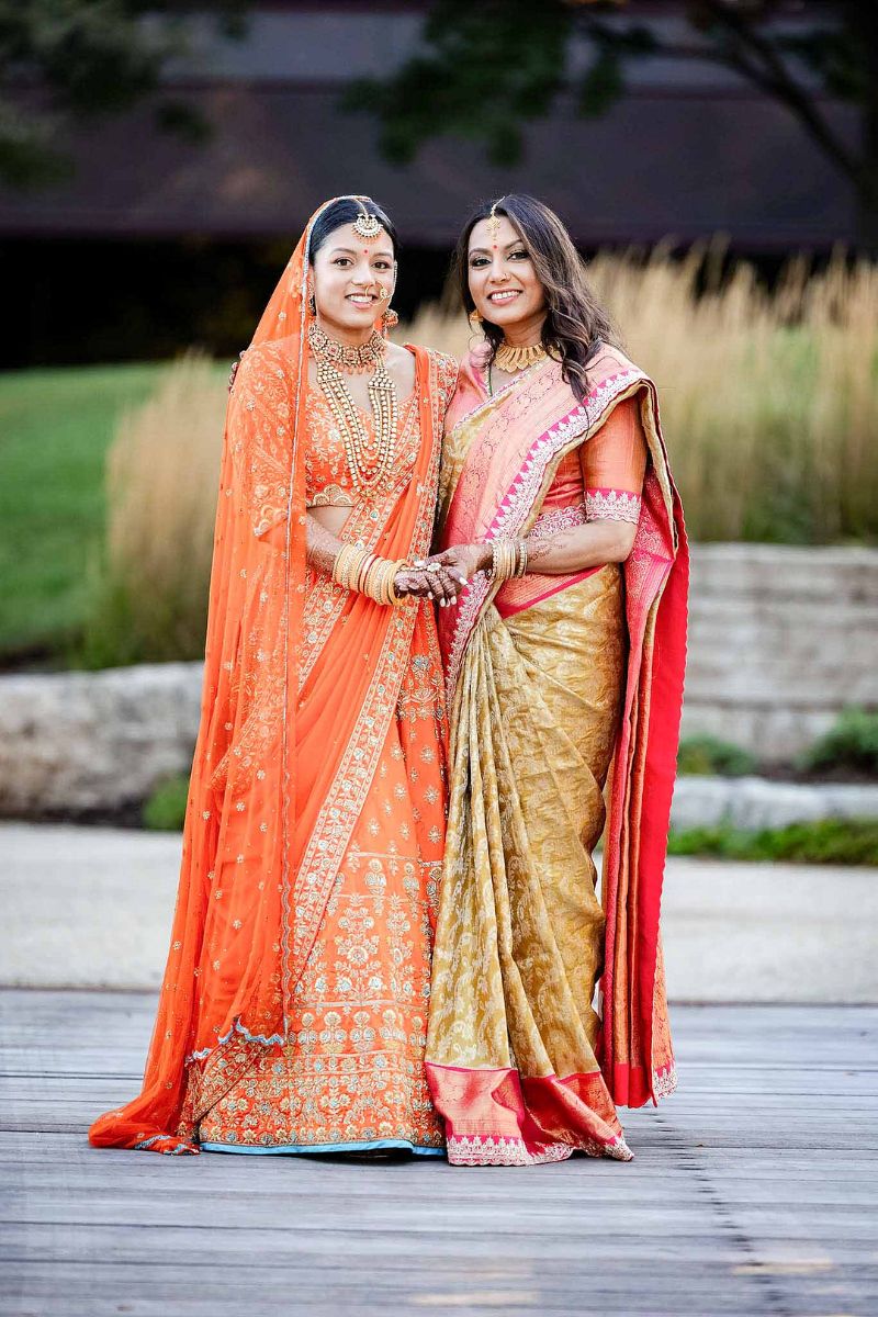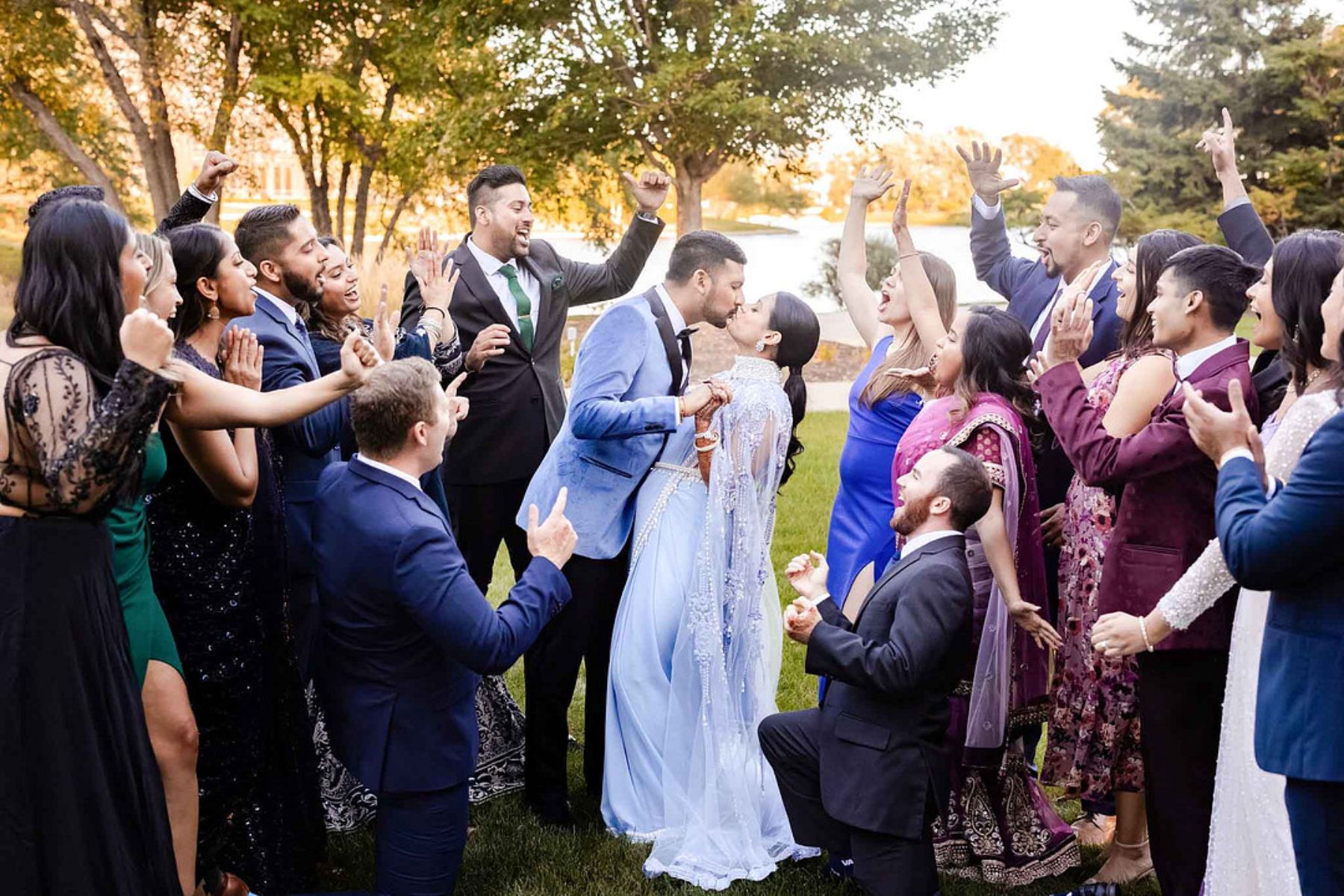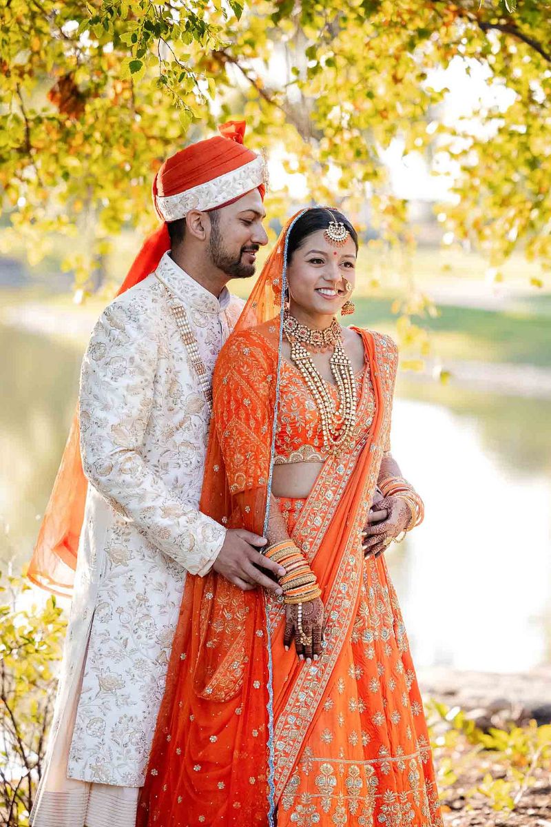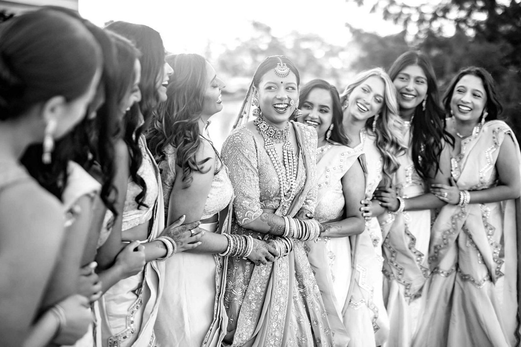 Simron and Rohan poured their hearts into creating an unforgettable wedding. Simron, a talented dancer, and Rohan, a dedicated doctor, planned a spectacular two-day event featuring over 20 choreographed dance performances. Moving from hall to hall at The Westin Chicago Northwest, we set up lighting for each scene, knowing that a wedding of this scale demands professional precision. The venue’s stunning surroundings provided the perfect backdrop for couple and bridal party portraits without having to leave the grounds—a blessing given the couple’s tightly packed schedule.