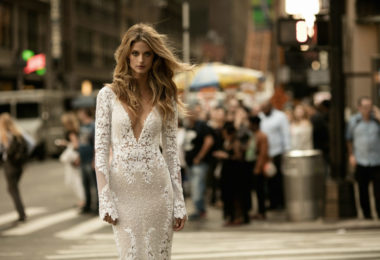 Appropriately enough, BERTA tended to her fascination with flowers for her fall 2017 bridal collection. Using its inner-complexity as the foundation, 3D flowers, lace appliqués, rich embellishments and sophisticated cuts come together in a glorious shade of charcoal blush to create 30 masterful designs. From boho and art-deco details to rich and glamorous motifs, each dress (modelled by Sports Illustrated model Kate Bock) tells a different story. May the bride who wears it blossom on the biggest day of her life.