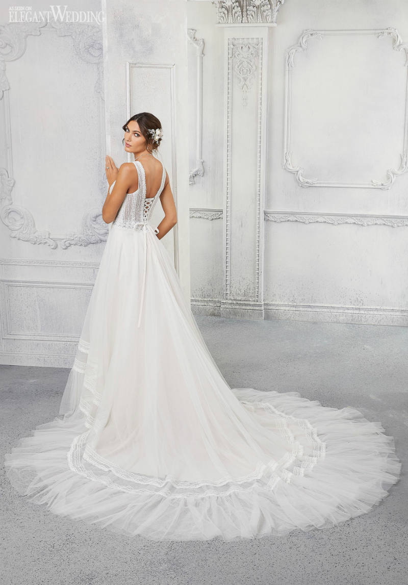 Bohemian and effortless in feel with hints of scalloped lace and lace appliques lends itself perfectly for beach weddings and beyond.