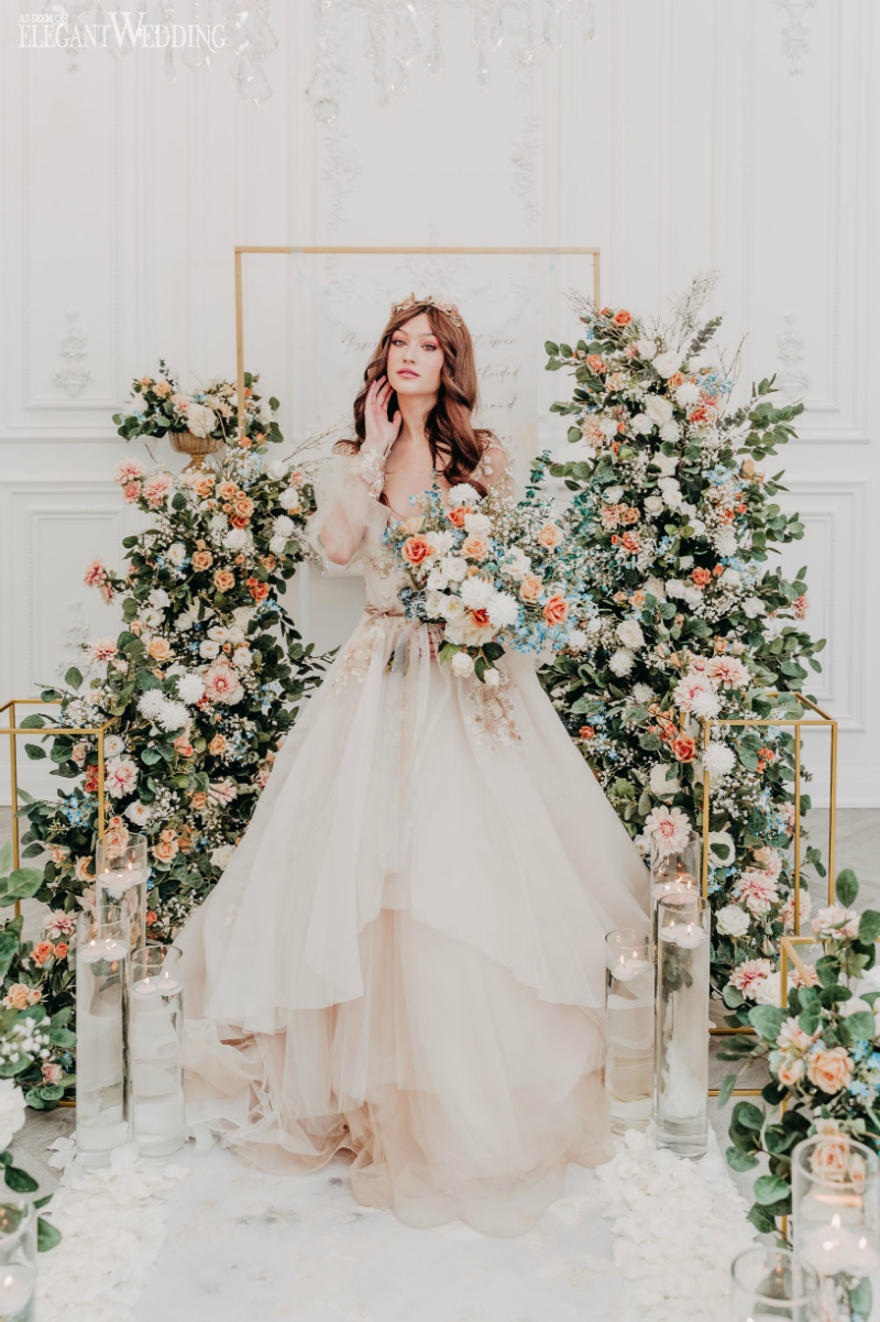 The creative concept for this shoot was to bring the indoors a tasteful and elegant butterfly-themed bohemian-inspired wedding in a regal ballroom.