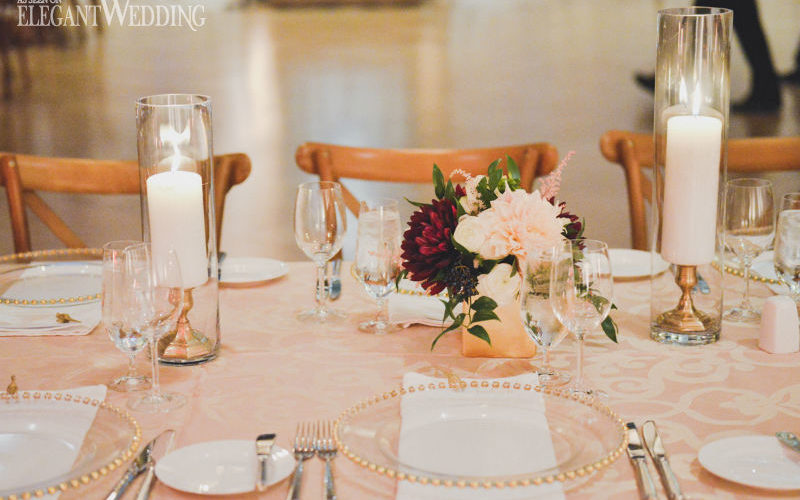 For this contemporary wedding at the Royal Ontario Museum, Bianca and Michael let the space speak for itself. Planned by Karina Lemke Wedding & Event Design, the theme focused on a modern palette of burgundy and gold with quirky prehistoric cues (mini dinosaur figurines set at each place setting) for the decor. Red uplighting set the mood while high and low candles set along each table created a romantic ambience. Alixandra Gould Photography didn’t miss a single detail.