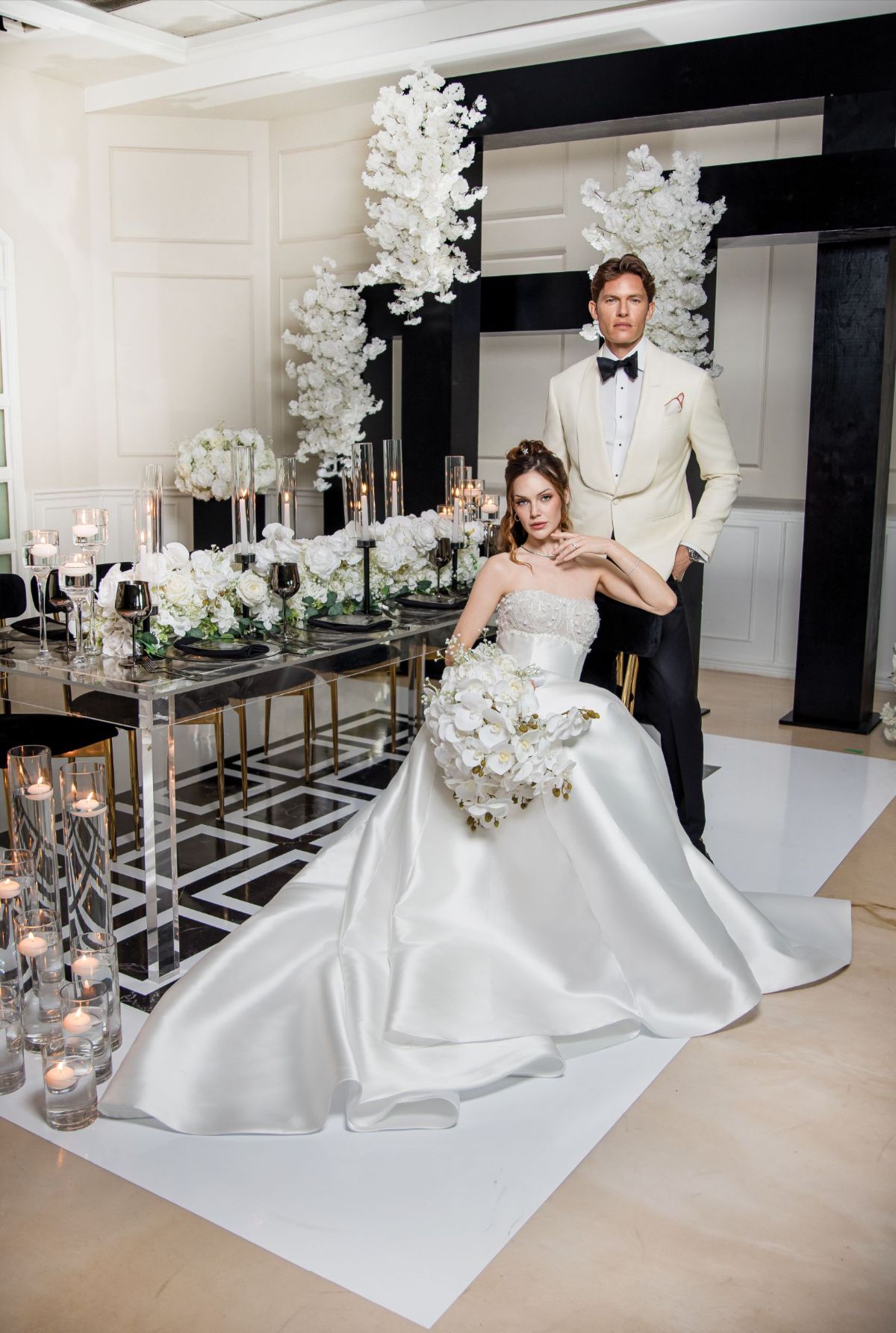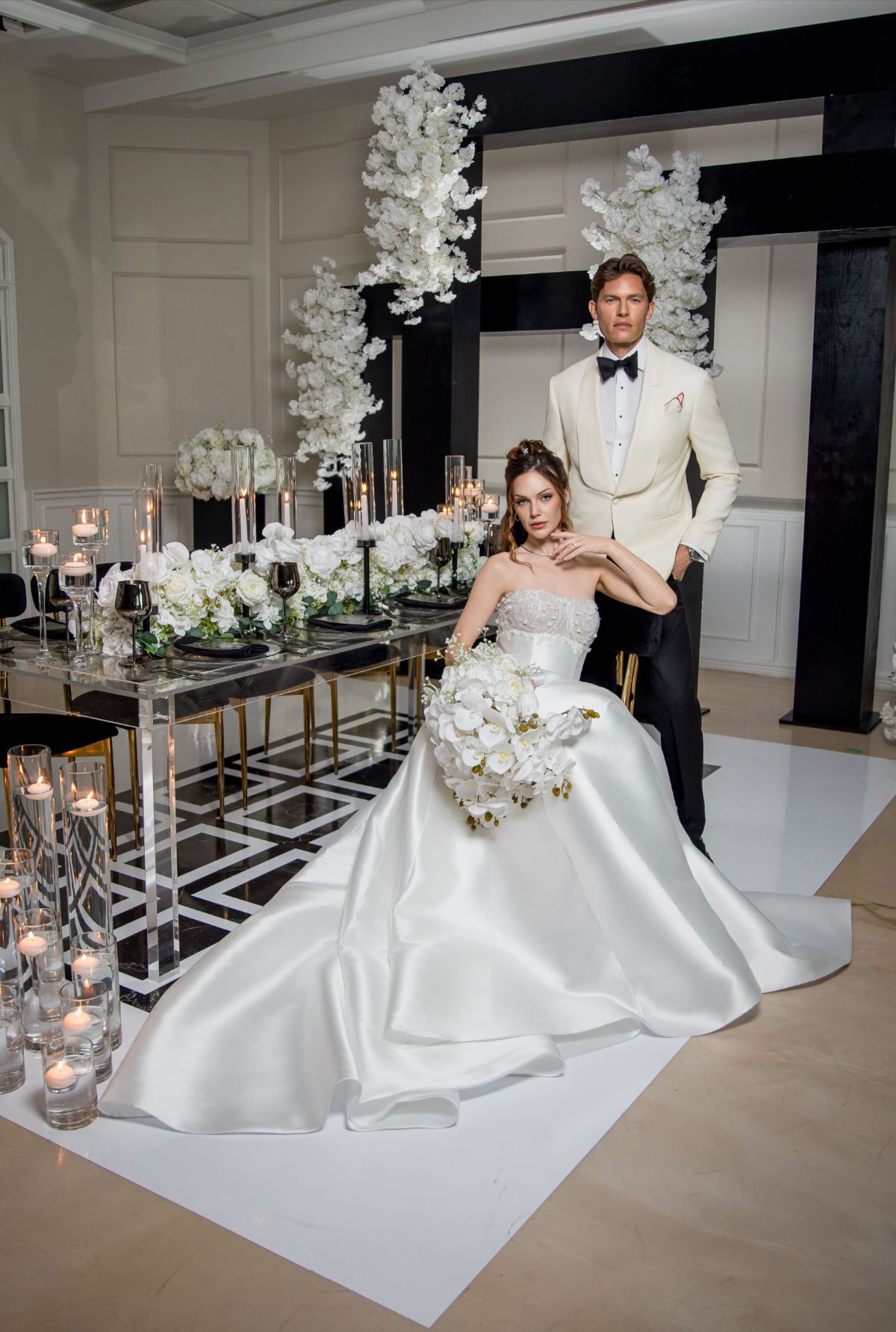 This feature proves that luxury is not about excess—it’s about balance, contrast, and impeccable styling. Black brings drama, white adds purity, and gold delivers that unmistakable sense of grandeur. For couples dreaming of a wedding that feels elevated, editorial, and timeless, this color palette will always make a statement.