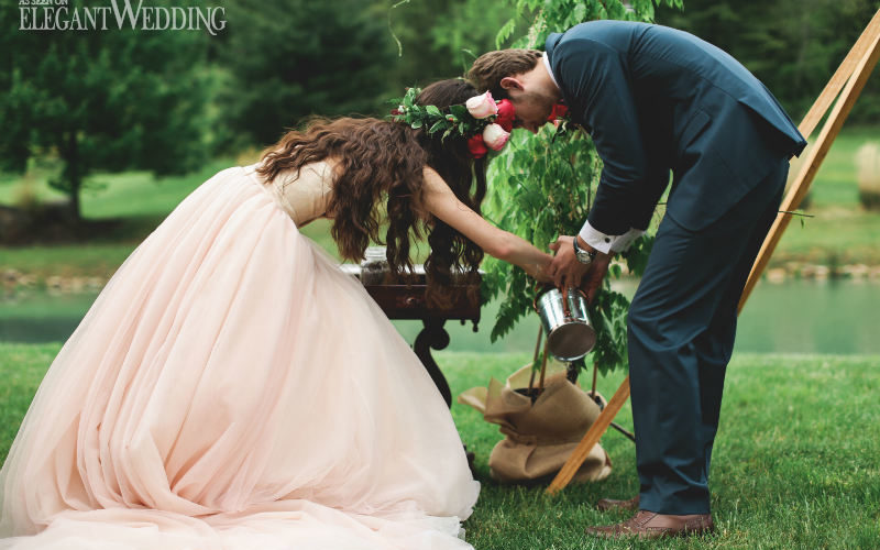 Like Jasmine Rose Photography first told us, we can’t help but feel completely smitten by the choice of the dark red colour and decor for Jessilon and Joel’s wedding. From the avant-guarde teepee arch at the ceremony to the romantic wooden swing used for photos, this wedding screams “boho.” To top it all off, a dark red palette provided the perfect pop of colour throughout the celebration unifying the bouquets, bridesmaids dresses, boutonnieres, shoes and flower crowns. Bride Jessilon even went the extra mile wearing a soft pink gown.