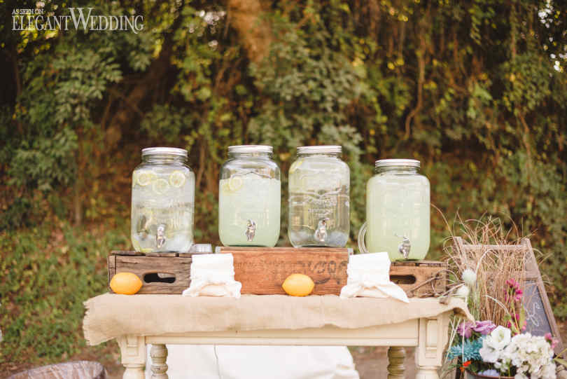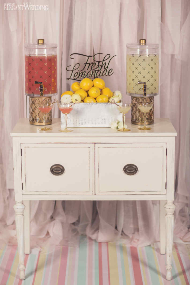 Whether you want to offer guests something refreshing for the ceremony or simply spice up your reception bar, a drink dispenser is the way to go. Super popular among brides today, the colourful jug is a treat for the eyes and the taste buds. To get you inspired for the big day, we’ve rounded up 19 of our favourite station designs from the blog!
