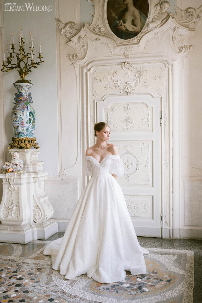 Photographer: Andrea Gallucci Photographer | Producer: The Seasons Workshops hosted by Amy Mulder Photography | Venue: Villa Sola Cabiati | Design and Styling: Federica Beni | Floral Designer: Floraison Paris | Planning, and coordination: Before The Moon Events | Bridal gowns: Eva Lendel | Beauty: Alessandro Mancino Studios | Rings: Artaner Paris | Table, chairs and table linens: Sofi Design | Dinnerware: Tableset Rentals | Papers: Acqua and ink | Wedding cake: Monannie cakes | Veil: Noon on the moon bridal | Other Location: Lake Como | Videography: The Komans