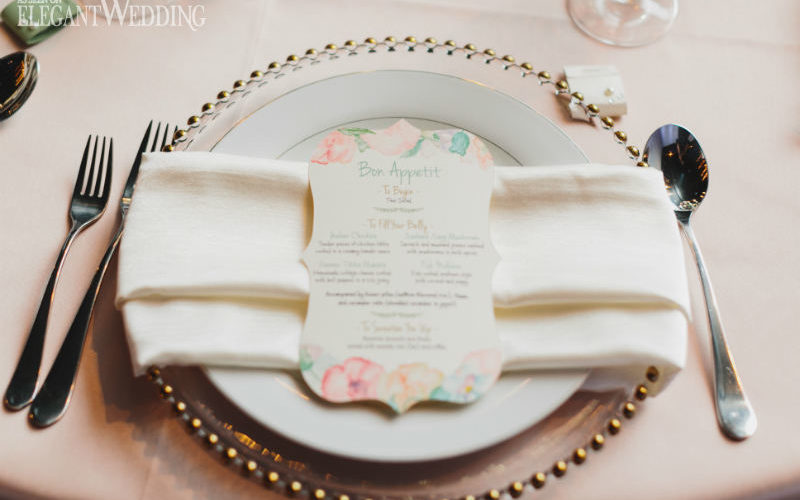 Lemon Truffle Decor & Floral Design transformed Hiral and Matthew’s outdoor Hindu ceremony into a romantic enchanted garden. Using the venue’s courtyard to their advantage, the scene beautifully exhibited both natural and elegant qualities through the use of a draped mandap, bordered aisle and arrangement of peach and pink florals. For the reception held inside, a lush green backdrop with a golden gate posed as the star behind the bride and groom. With an acrobatic performance, customized dance floor by Event Graffiti and garden-themed photo booth, guests were able to let loose and have fun all while being surrounded by a gorgeous indoor garden.