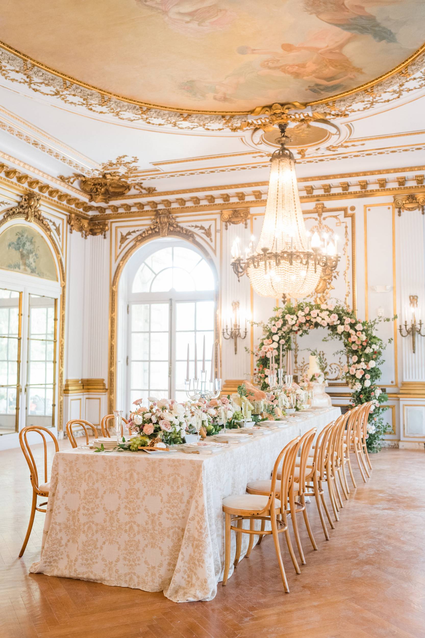 A perfect spring day, luscious florals, intricate stationery, couture dresses and jaw-dropping models made this styled wedding photoshoot a dream. Future couples hosting events at this venue throughout the property can bring their vision to life with neutral marble and white backdrops or utilize the areas with more historic art details.”