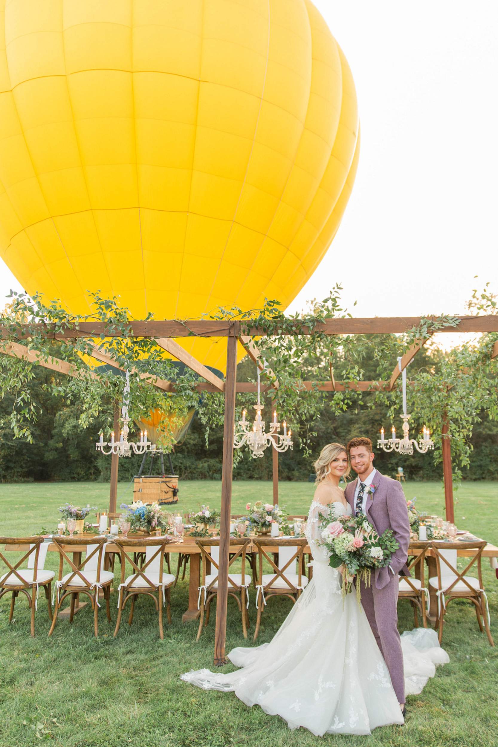 When it comes to weddings, it’s easy to fall into familiar patterns, with many elements feeling similar or identical. The goal for the shoot was to break free from this mold. They crafted a wedding experience that truly feels unique and personal to the couple. The key to achieving this? Partnering with professionals who can offer something completely different—starting with a breathtaking hot air balloon. Most people never have the chance to enjoy the thrill of a hot air balloon ride, so why not make it a highlight of your wedding? Whether it’s a memorable ceremony send-off, a stunning photo backdrop, or a fun and unique way to entertain guests during the cocktail hour or reception. A hot air balloon is sure to leave a lasting impression.
