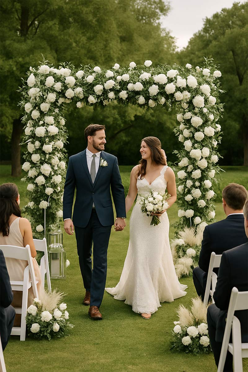 Symbolizing infinity and unity, the circular flower arch remains a favorite among modern couples. Its 360-degree form looks stunning from every angle.