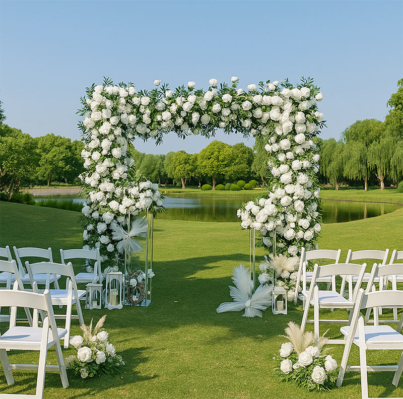 Forget standard symmetry. The latest flower arch concepts are asymmetrical, using uneven clusters and exposed frames. This sculptural approach adds modern drama to traditional ceremony spaces.