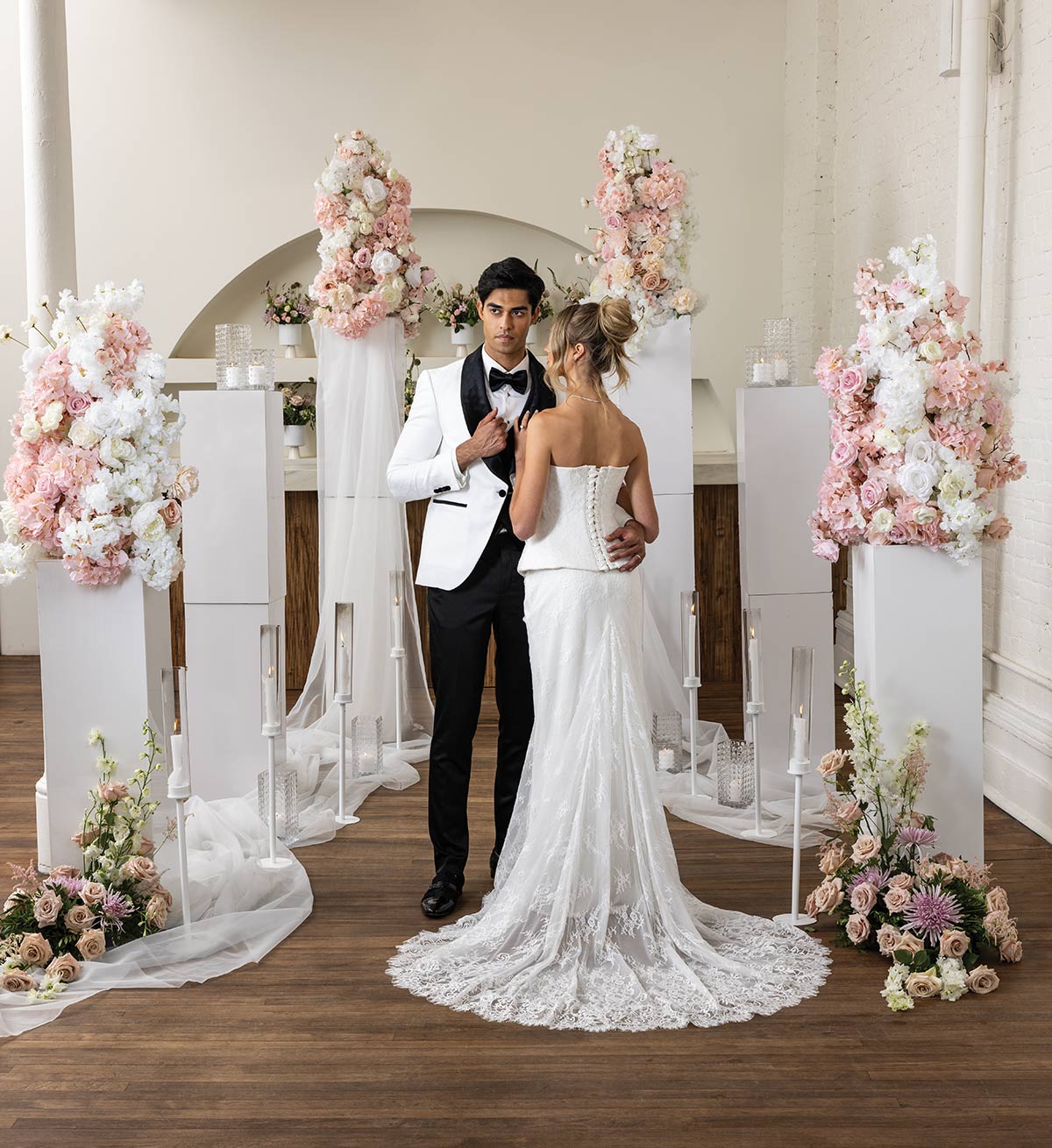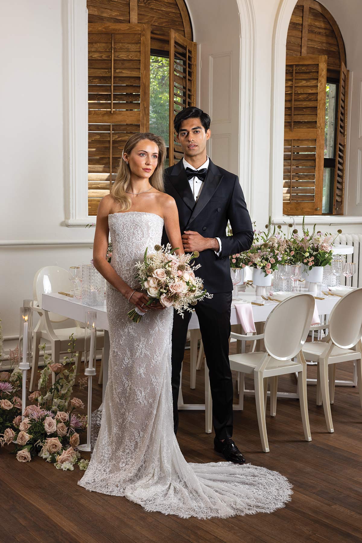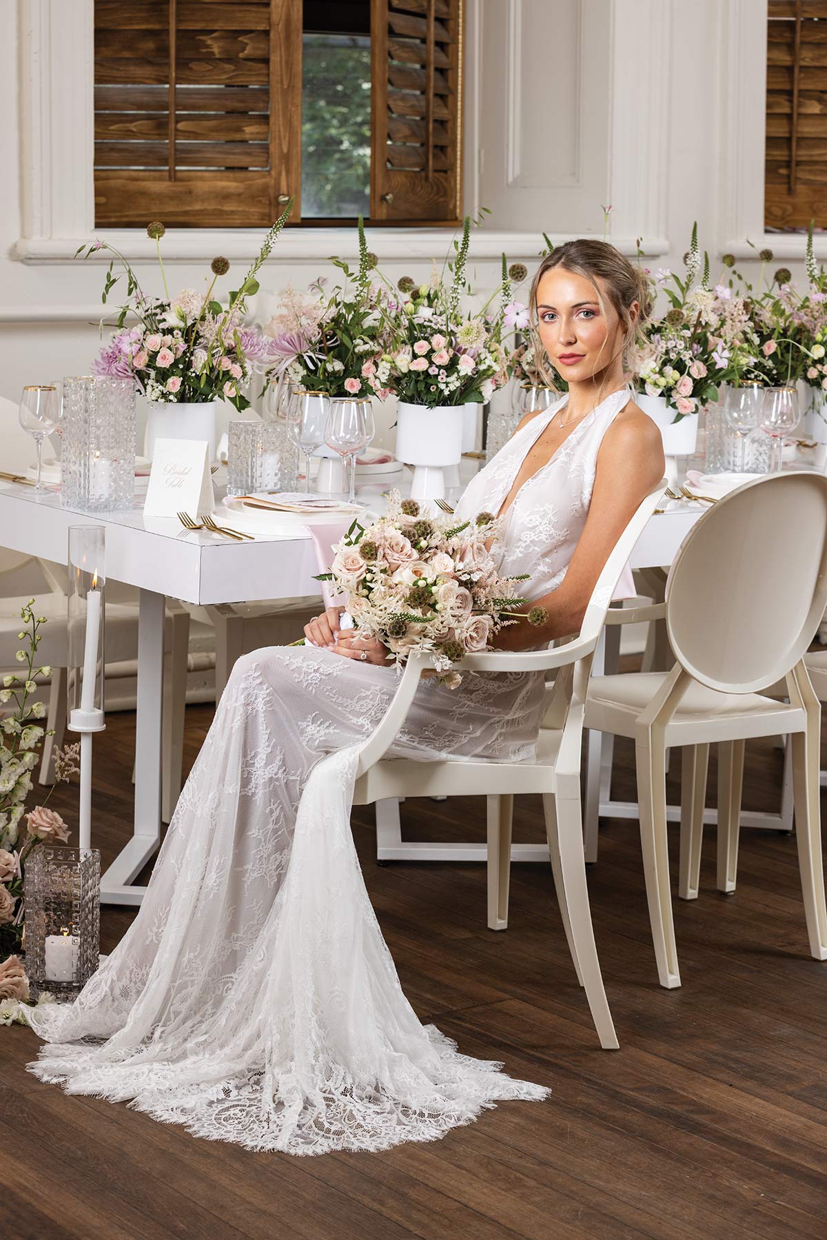This wedding styled shoot is all about effortless elegance with a modern twist. Soft blush tones, crisp whites, and refined details come together to create a look that feels romantic, fresh, and timeless.