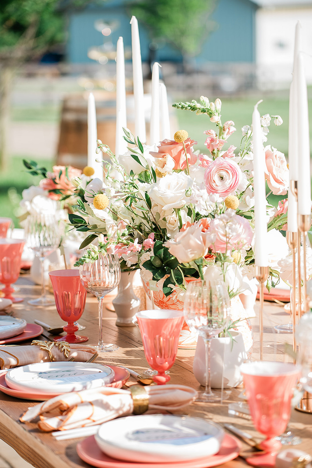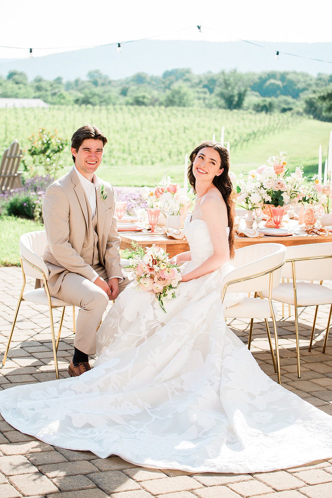 Blending old-world romance with contemporary details, the shoot featured two stunning ceremony locations, dual reception setups, and sweeping vineyard views. Every corner of the venue offered something magical, from intimate stone nooks to wide-open alfresco dining scenes.
