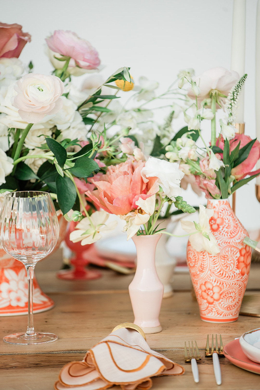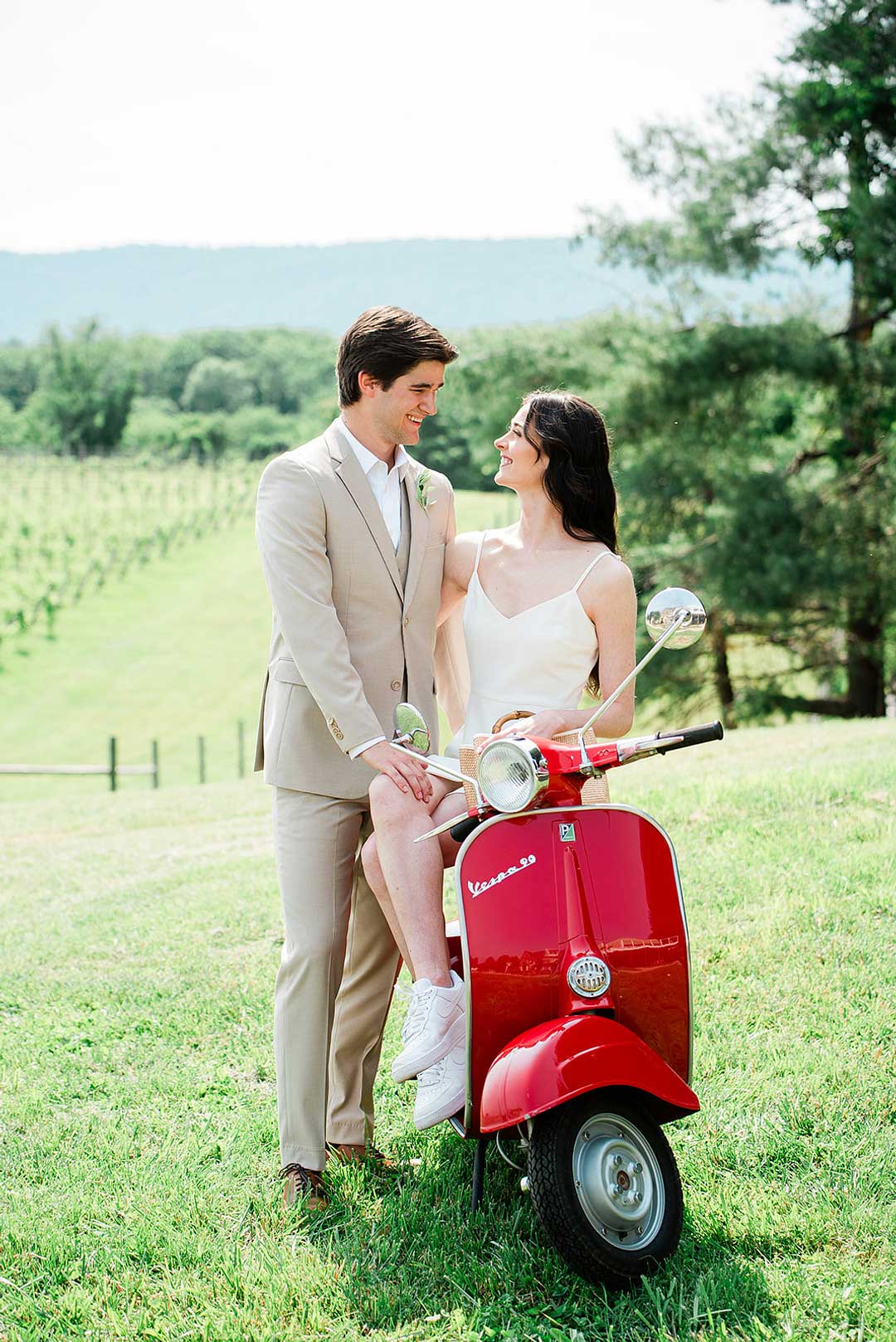 The tablescape was a true highlight: terra cotta tones met soft pistachio accents, each place setting thoughtfully styled with a custom gelato cup and flag escort card. A Vespa added the perfect Italian touch, while a specialty seating chart crafted with terra cotta tiles completed the look.