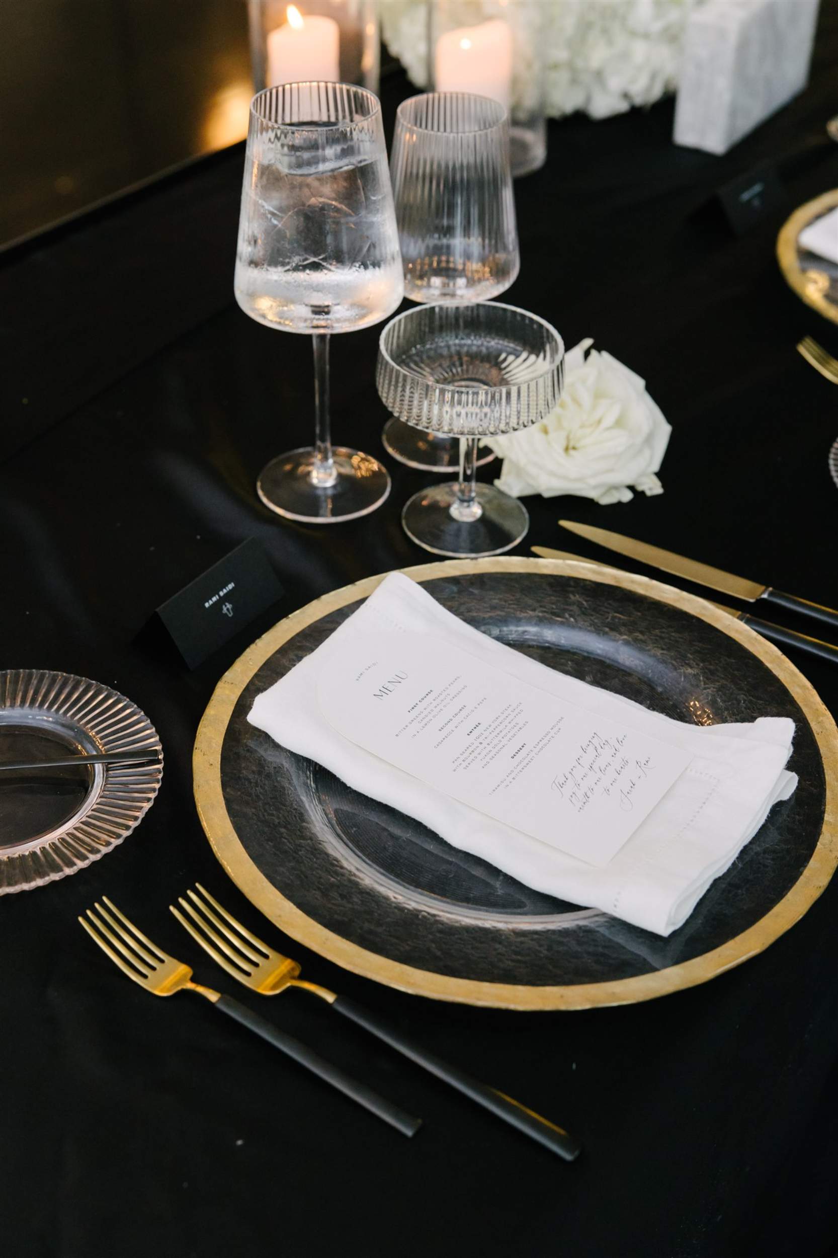 From the moment we embarked on this journey 1.5 years before their wedding, our team meticulously curated every detail—from selecting the venue to transforming the space into an immersive, high-fashion experience. Black was not a color to fear, but rather a statement of sophistication. Dramatic, moody, and undeniably high-end, the event’s color palette of deep black and crisp white created an unforgettable visual contrast against the hotel’s ornate architecture.