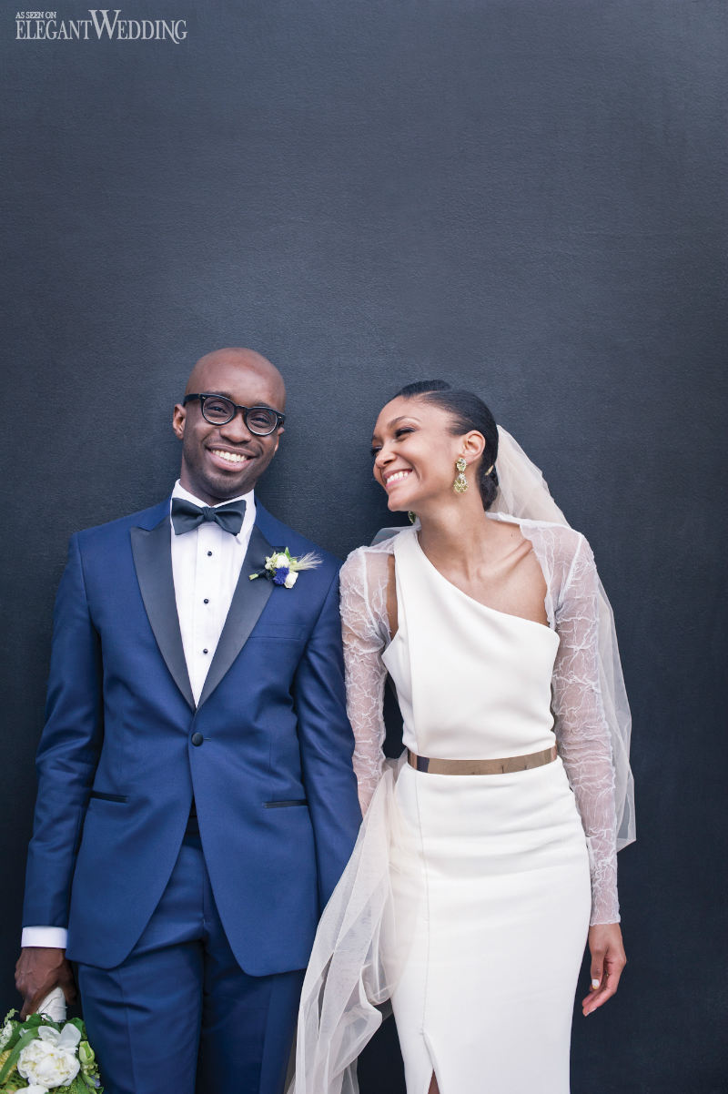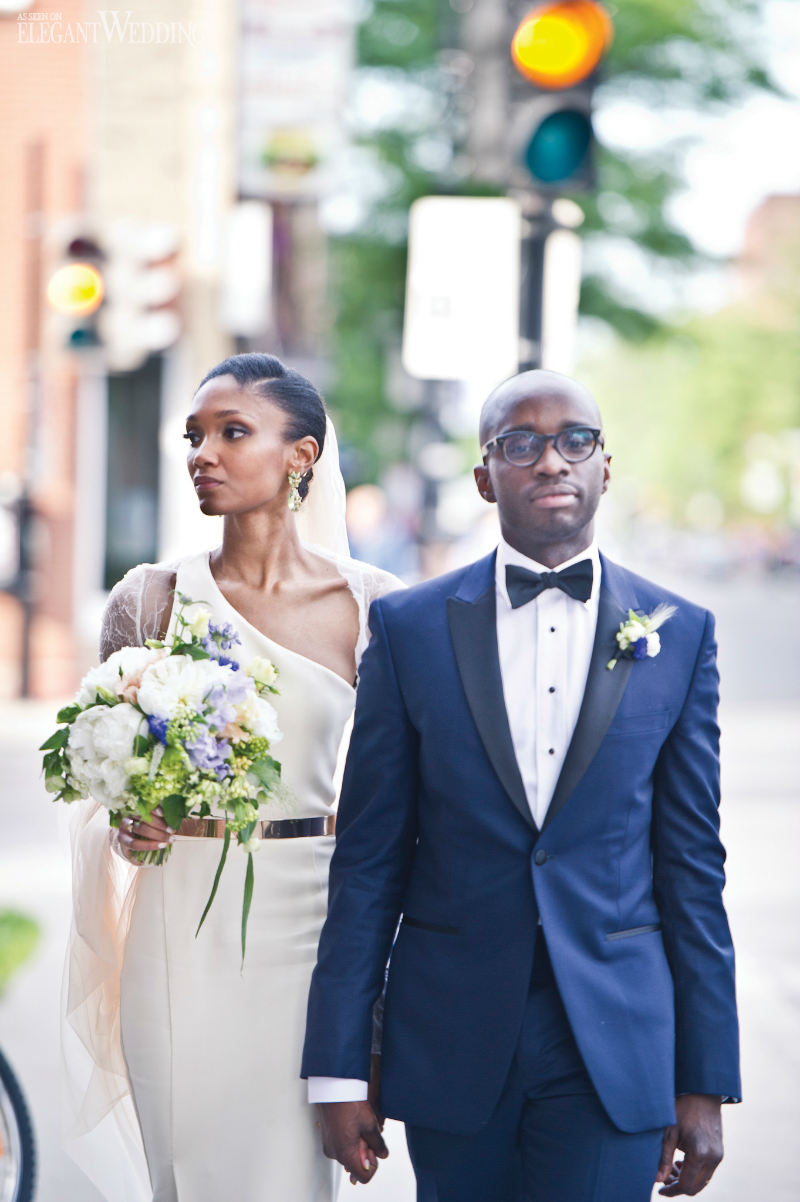 Photography: Lindsay Muciy Photography | Florist: Atelier Carmel | Rentals: Location Gervais | Suit: Waxman House | Dress: Custom by La Perle Blanche (business from a designer from Montreal Stefania Orlando) | Makeup: Ella Moran Makeup | Hair: Nana et les Girls | Entertainment (Reception): Dj Platinumd (music) and Keteke (percussions) | Videography: Studio Home Sweet Home | Ceremony: Église Notre-Dame-des-Sept-Douleurs | Venue, Catering & Linens: Espace Canal (Restaurant L’Ambroisie)