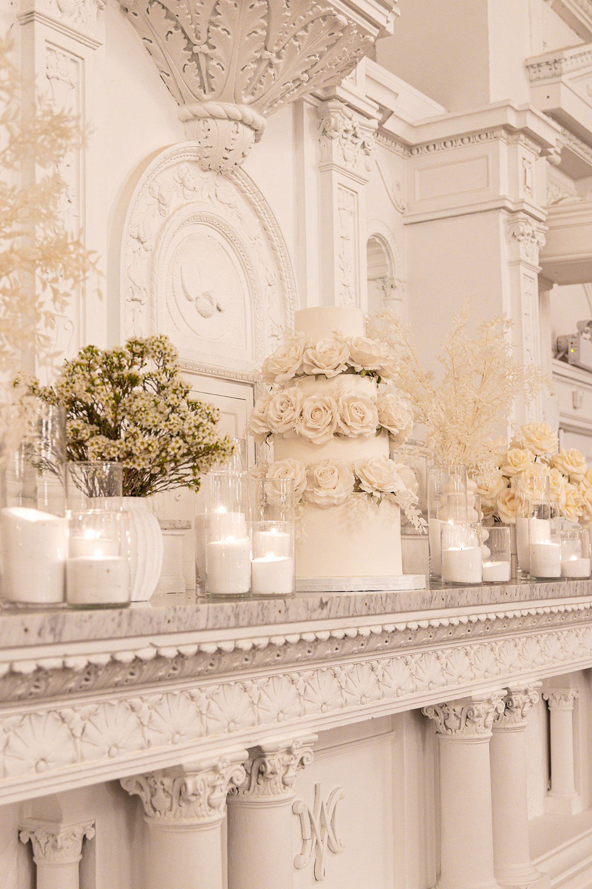 Every detail, from the grand white paneling to the delicate floral arrangements, contributes to an ambiance of understated luxury. The mix of classic and contemporary elements ensures a wedding that feels both timeless and fresh. The venue’s natural beauty does much of the work, requiring only subtle enhancements to elevate its romantic charm.